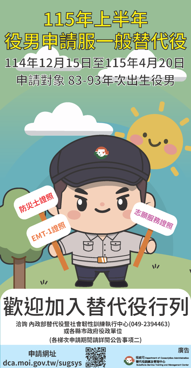 115年上半年役男申請服一般替代役甄選作業公告