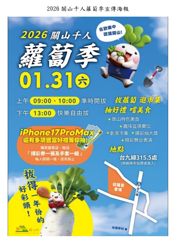 🔖 活動名稱:2026 關山千人蘿蔔季