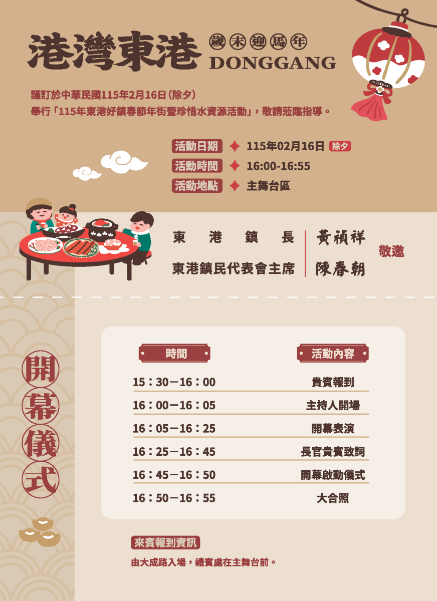 轉知屏東縣東港鎮公所「115年東港好鎮春節年街暨珍惜水資源」活動訊息