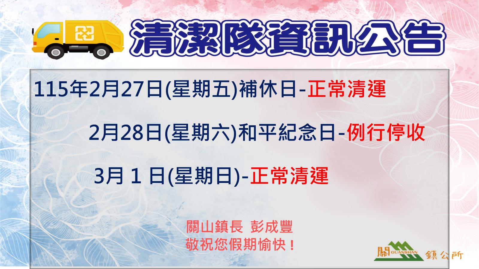 二二八連假調整垃圾清運資訊