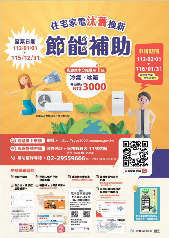 轉知經濟部115年度「住宅家電汰舊換新節能補助」