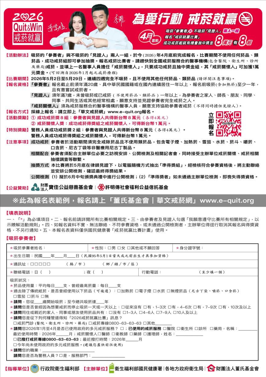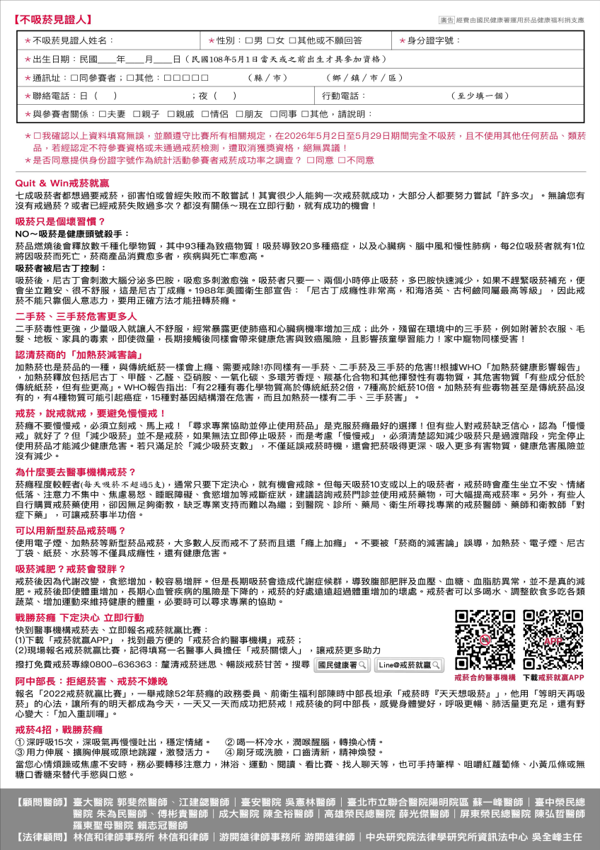 轉知臺東縣環境保護局「2024戒菸就贏比賽」戒菸活動