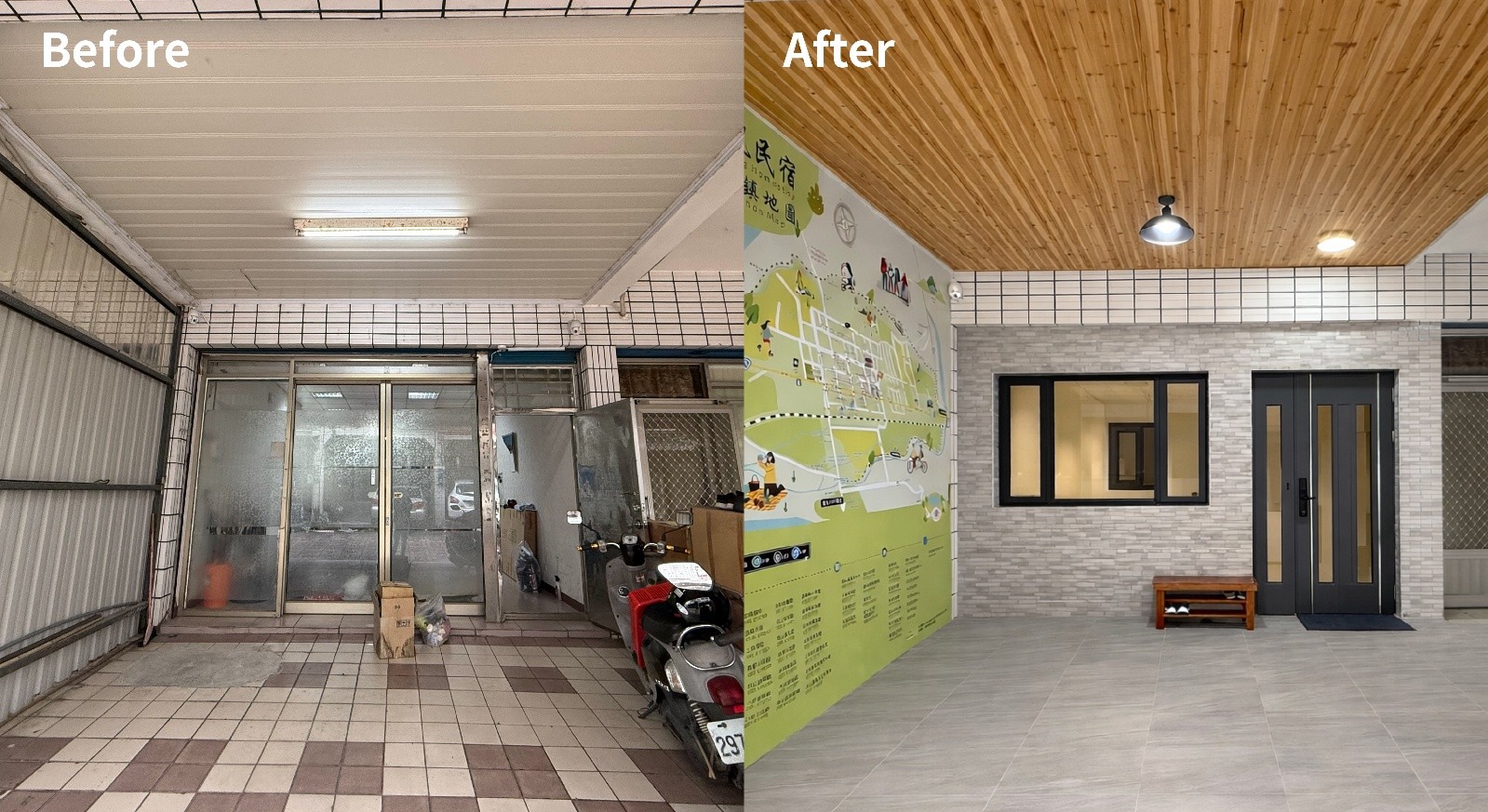 一、原先的民宿空間較簡陋且看不出式營業接待場域,藉由輕改裝後增加氛圍感,並張貼鎮內旅遊地圖,提供遊客旅遊資訊服務。.jpg)