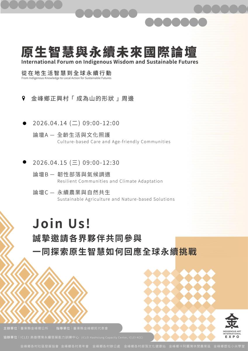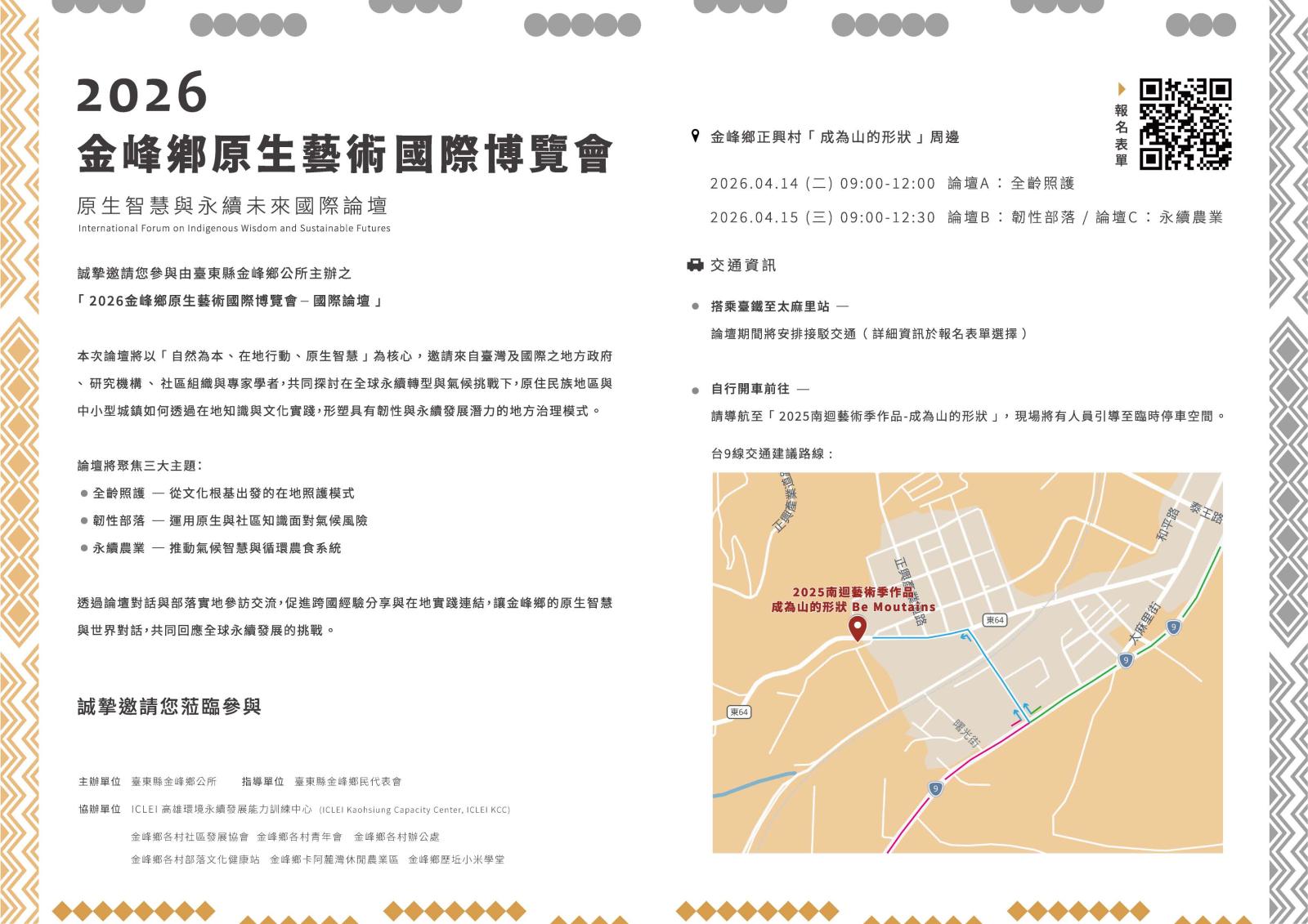 轉知金峰鄉公所辦理「2026金峰鄉原生藝術國際博覽會原生智慧與永續未來國際論壇」
