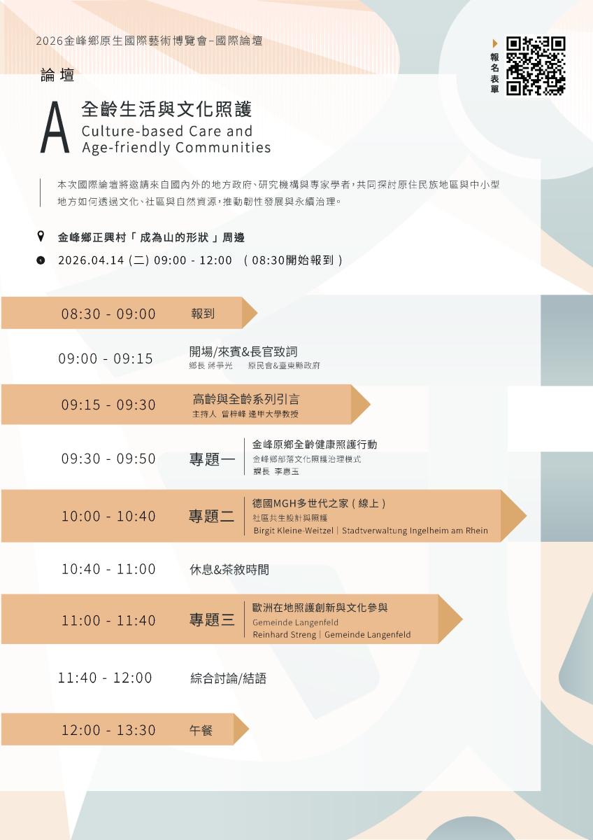 1、 論壇A:全齡生活與文化照護115年4月14日上午9時至12時。