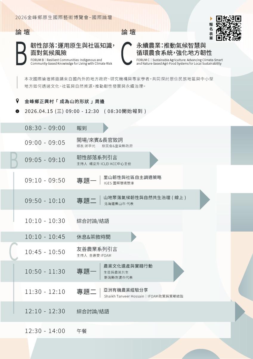 2、 論壇B:韌性部落與氣候調適115年4月15日上午9時至10時45分。