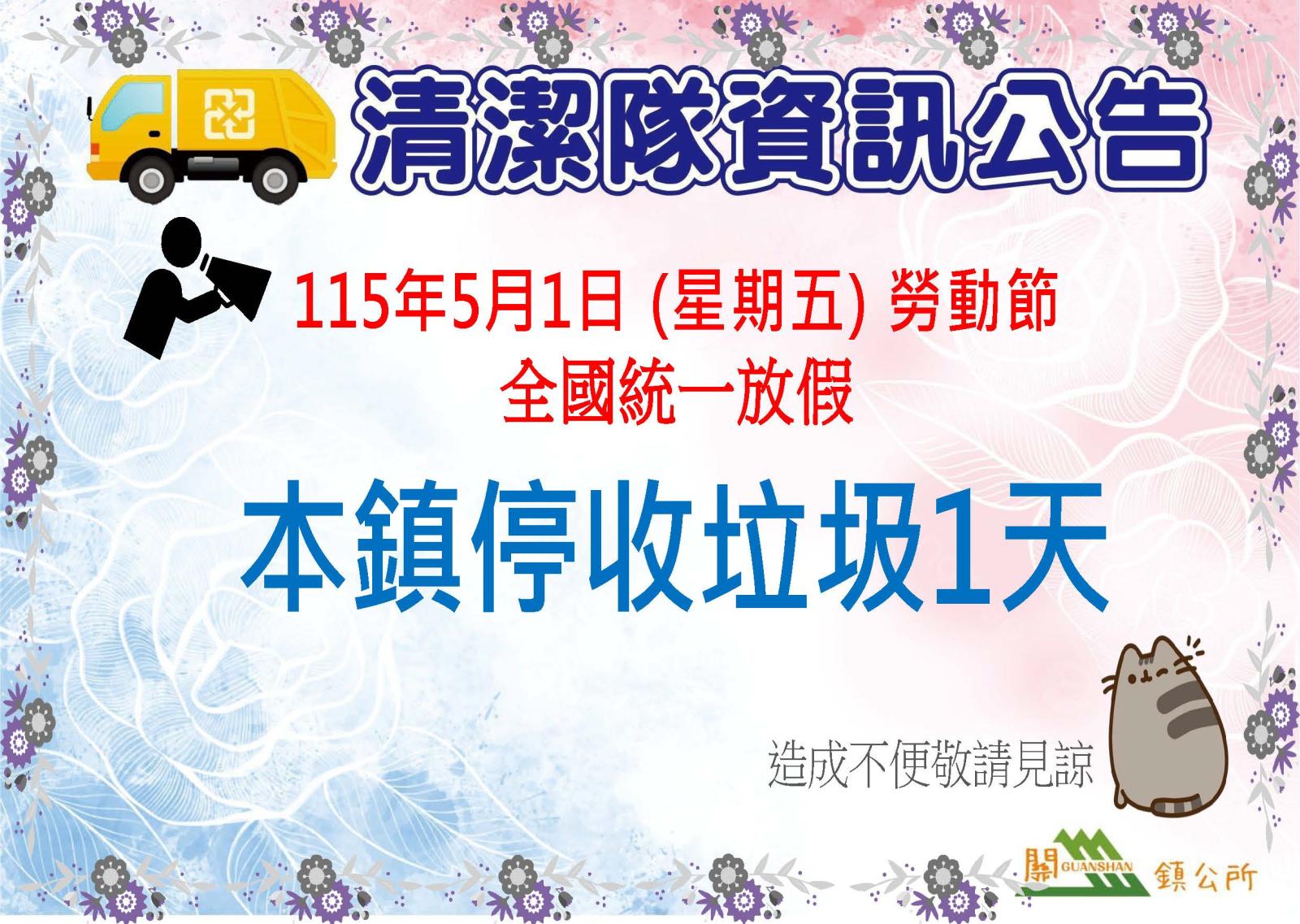 勞動節停收垃圾通知