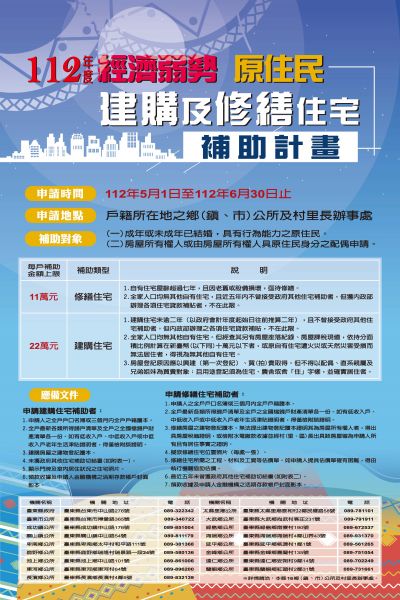 轉知原民會「112年度補助經濟弱勢原住民建購及修繕住宅計畫」受理申辦期限自本(112)年5月1日至6月30日止【原文課】