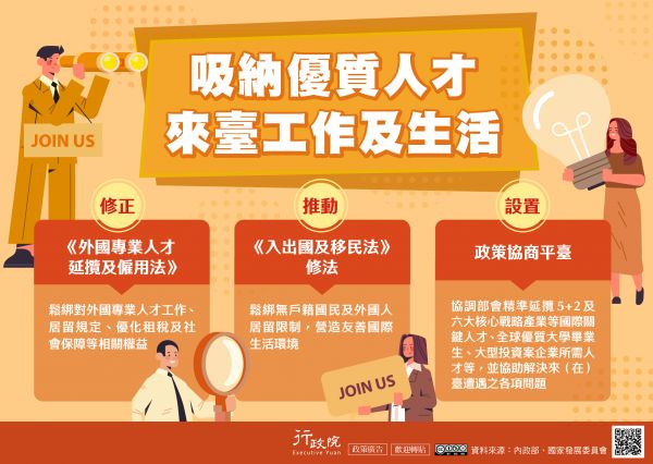 轉知行政院推廣「吸納優質人才來臺工作及生活」政策說明資料【秘書室】