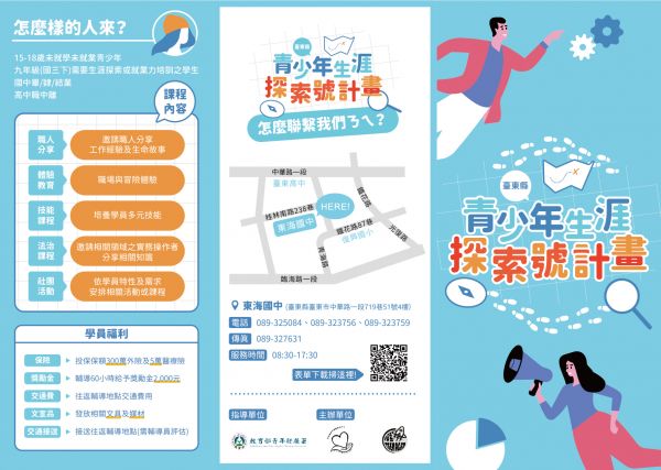 轉知臺東縣政府青少年生涯探索號計畫(以下稱青探號)「海嘯上課吧-法治與性別平等教育」課程資訊【原文課】