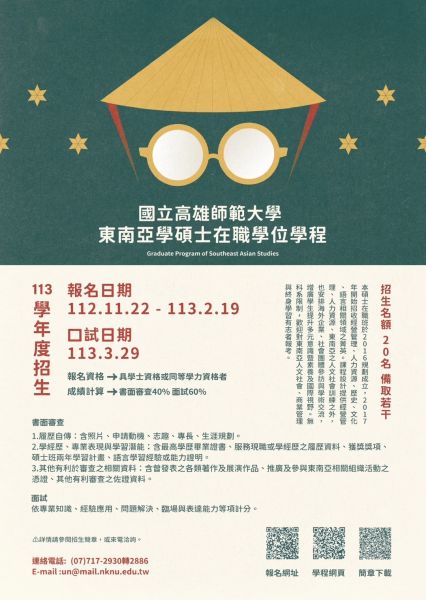 一、依據國立高雄師範大學112年12月4日高師大進字第1121010436號函辦理。